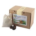 Мыльные орехи ® фасуются преимущественно в оригинальные прочные коробки из экологичного неотбеленного микрогофрокартона, который производится из вторичного сырья. Данный тип упаковки выбран для Мыльные орехи ® в связи с тем, что плоды сапиндуса достаточно хрупкий продукт и требует защиты для сохранения товарного вида. Упаковка в виде тряпичных мешочков, широко получившая распространение на рынке не может обеспечить достаточную защиту для продукции. Кроме того, как показал наш опыт, коробка намного удобнее и эстетичнее в использовании, т. к. наполовину опустошенный мешочек из тряпки имеет очень непрезентабельный вид, и пользоваться им менее удобно. Кроме того, упаковка в виде тряпочных мешочков достаточно легко подделывается и никто не может дать гарантии на содержимое этого мешочка, за исключением случаев прямой покупки у производителя.