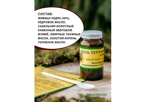 Свойства: мазь способствует устранению хронических суставных воспалений, активизирует вывод солей, шлаков и токсинов из суставов и позвоночника.