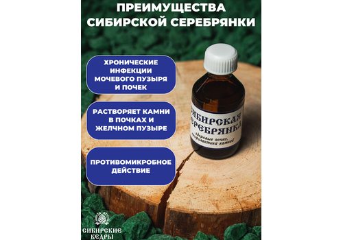 Свойства: масло цвета Сибирской Серебрянки – противовоспалительное средство, снимает температуру (даже хроническую), растворяет камни почек и желчного пузыря, кровоочистительное, очищает и омолаживает организм на клеточном уровне.