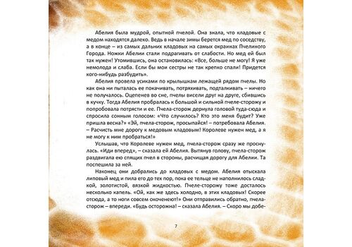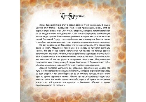 Удивительные вещи происходят в этой сказочной книге, например, когда пчелка Солнечный Луч ищет особенно хороший мед и не может улететь домой, потому что стало слишком холодно. Ей приходится в одиночестве провести ночь в лесу, где ее ждет захватывающее приключение. Читатель (или слушатель) узнает, как по мере взросления пчелки растут также и возложенные на нее задачи и ответственность, пока она, в конце концов, не станет первой служанкой старой Королевы-матки.