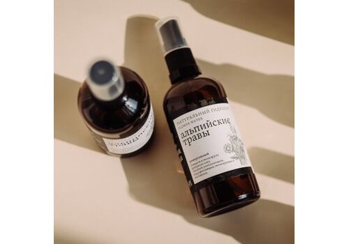 Гидролат альпийских трав (цветочная вода) — продукт пароводяной дистилляции) чабреца, донника, репешка, зверобоя, мелиссы, душицы. Собранный конденсат пара — это целебная жидкость, которая содержит водорастворимые полезные компоненты растения.