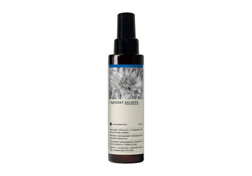Гидролат василька прекрасное средство для ухода за чувствительной и нежной кожей вокруг глаз. Снимает отеки и темные круги под глазами, раздражение и усталость. Обладает антивозрастными свойствами: разглаживает мелкие морщинки, препятствует преждевременному старению. Тонизирует, освежает, питает кожу лица и декольте. Обладает антибактериальным свойством, очищает от воспалений.