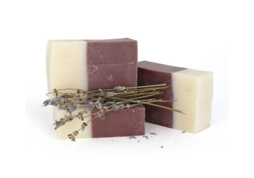Состав: натриевые соли масел (кокосового, ши, кукурузного, оливкового, рапсового), вода, эфирное масло лаванды, оксид железа, цинка.