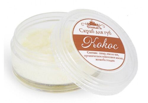 Скраб для губ Кокос — это сочетание мягкого аромата тропического кокоса и прекрасного ухода за кожей губ! Оказывает отшелушивающее и смягчающее действие, не травмируя губы и не вызывая раздражения. Масло Ши и Жожоба Голден интенсивно восстанавливает губы, улучшает рельеф губ и придает им гладкость. Органическое масло Кокоса с невероятно сладким приятным запахом питает и смягчает кожу губ. В качестве скрабирующих частиц используется сахар. После применения скраба остается ощущение напитанности и увлажненности, а цвет губ становится более ярким!
