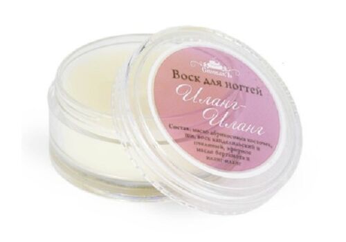 Воск для ногтей "Иланг-Иланг" укрепляет ногти и улучшает их структуру. Масла абрикосовых косточек и ши питают ногти и смягчают кутикулу, пчелиный и канделильский воск способствуют укреплению ногтей и защищают от негативного внешнего воздействия. В свою очередь, эфирные масла бергамота и иланг-иланг укрепляют ногти и придают блеск.