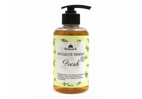 Жидкое мыло "Fresh" — бодрящее сочетание свежего запаха хвои и цитруса! Композиция эфирных масел сосны, пихты, ели и литсея кубеба, которая является прекрасным защитником от негативного воздействия внешний среды, повышает упругость кожи, ускоряет регенерационные процессы, помогает более быстрому выведению токсинов, эффективна также и в борьбе с проблемами кожи различной этиологии.