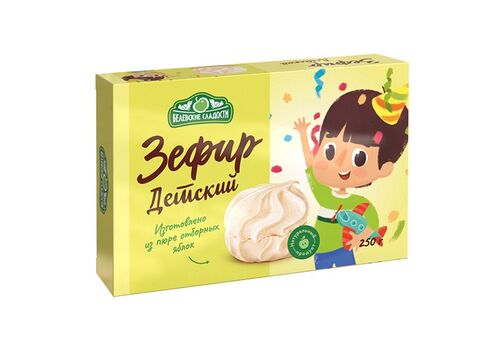 Белёвский зефир Детский – это не просто сладость, а утонченное лакомство. Это великолепное лакомство с неповторимым освежающим вкусом Вас порадует! Зефир изготовлен вручную по старинным технологиям, которые исключают любые ненатуральные добавки.