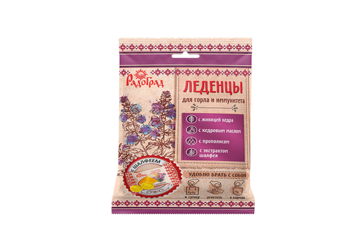 Живичные леденцы «Радоград» с шалфеем обладают противовоспалительными, дезинфицирующими и отхаркивающими свойствами.
