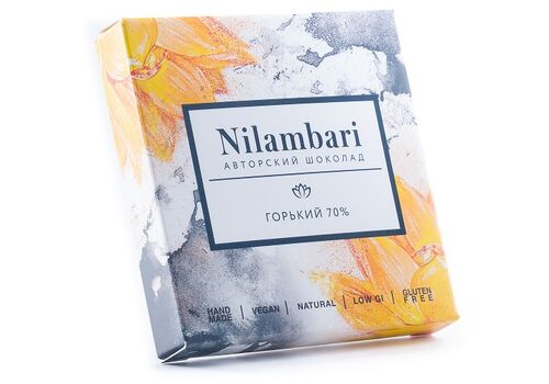 Nilambari- это авторский шоколад из натурального высококачественного сырья, в котором используется натуральный подсластитель — высушенный нектар кокосовых соцветий (кокосовый сахар), имеющий низкий гликемический индекс, или  сухофрукты. В процессе приготовления шоколад не нагревается выше 45 градусов, сохраняя максимум пользы. Изготавливается шоколад на каменных жерновах, разливается и упаковывается вручную, с любовью.