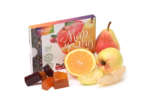 Мармелад — любимое лакомство с детства. Мало найдется людей, которые не любят сладости. Многие отказываются от них ради красивой и стройной фигуры. Но не многие знают, что существуют десерты, которые не полнят, да еще и приносят пользу организму. К ним относится наш натуральный мармелад без сахара ассорти, в основе которого апельсин, ягоды клюквы, черной смородины и крыжовника, а также патока и агар-агар.