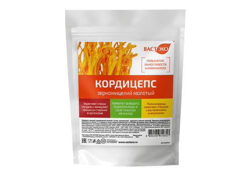 Кордицепс (Cordyceps militaris), в народе его называют военный врач – это гриб, который используется в традиционной восточной медицине уже более тысячи лет. Его называют "грибом долголетия" и "грибом императоров" из-за его впечатляющих свойств. Зерномицелий Кордицепса - уникальный органический продукт, выращенный на буром нешлифованном рисе высшего качества в России! Зерномицелий Кордицепса от ВАСТЭКО с высоким содержанием кордицепина - идеальный выбор для тех, кто хочет использовать натуральное средство для укрепления своего здоровья. За счет богатого химического состава сушеный кордицепс оказывает полезное воздействие на организм человека: улучшение состояния иммунной системы, помощь в борьбе с вирусными и бактериальными заболеваниями, повышение выносливости при физических нагрузках, улучшение работоспособности, положительное влияние на состояние нервной, эндокринной, дыхательной и половой систем, препятствие процессам старения.